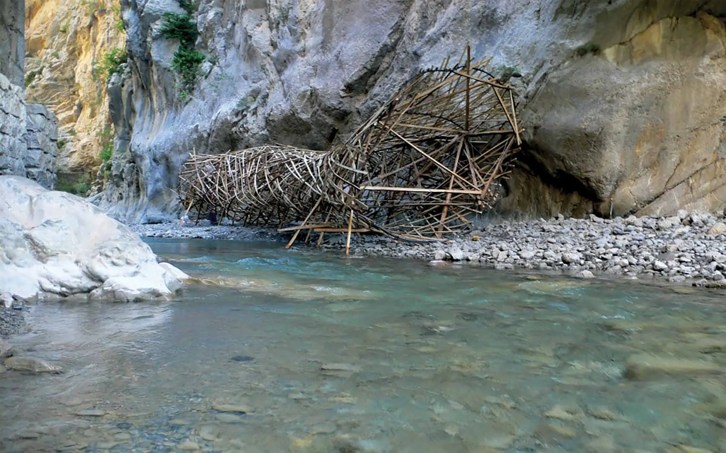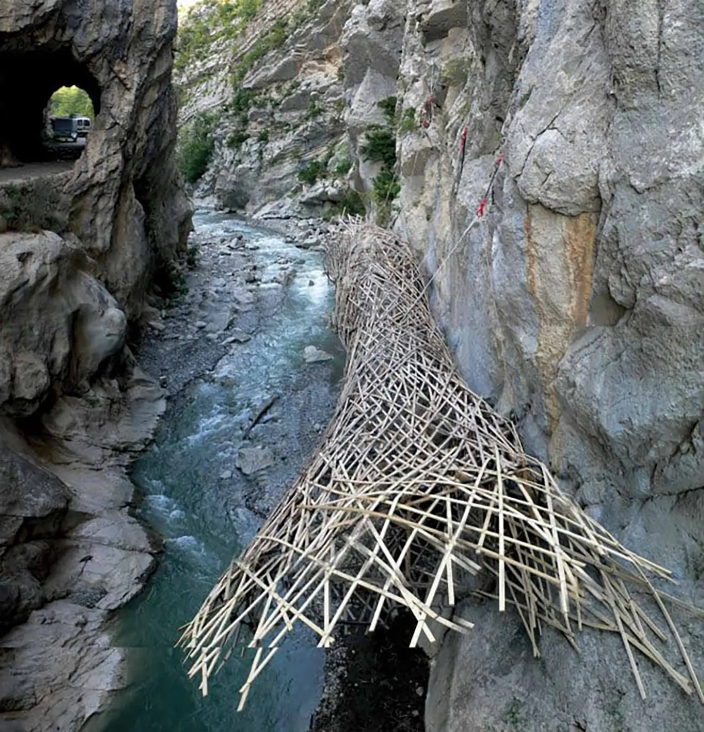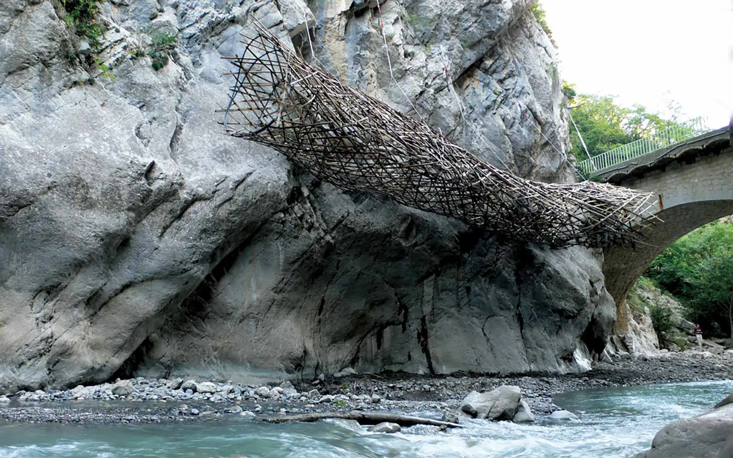 Inspirés d’un accouplement entre une bosselle et un trichoptère, étudiants et enseignants parent les Clues de Barles des vestiges d’une chrysalide d’un insecte géant et imaginaire.