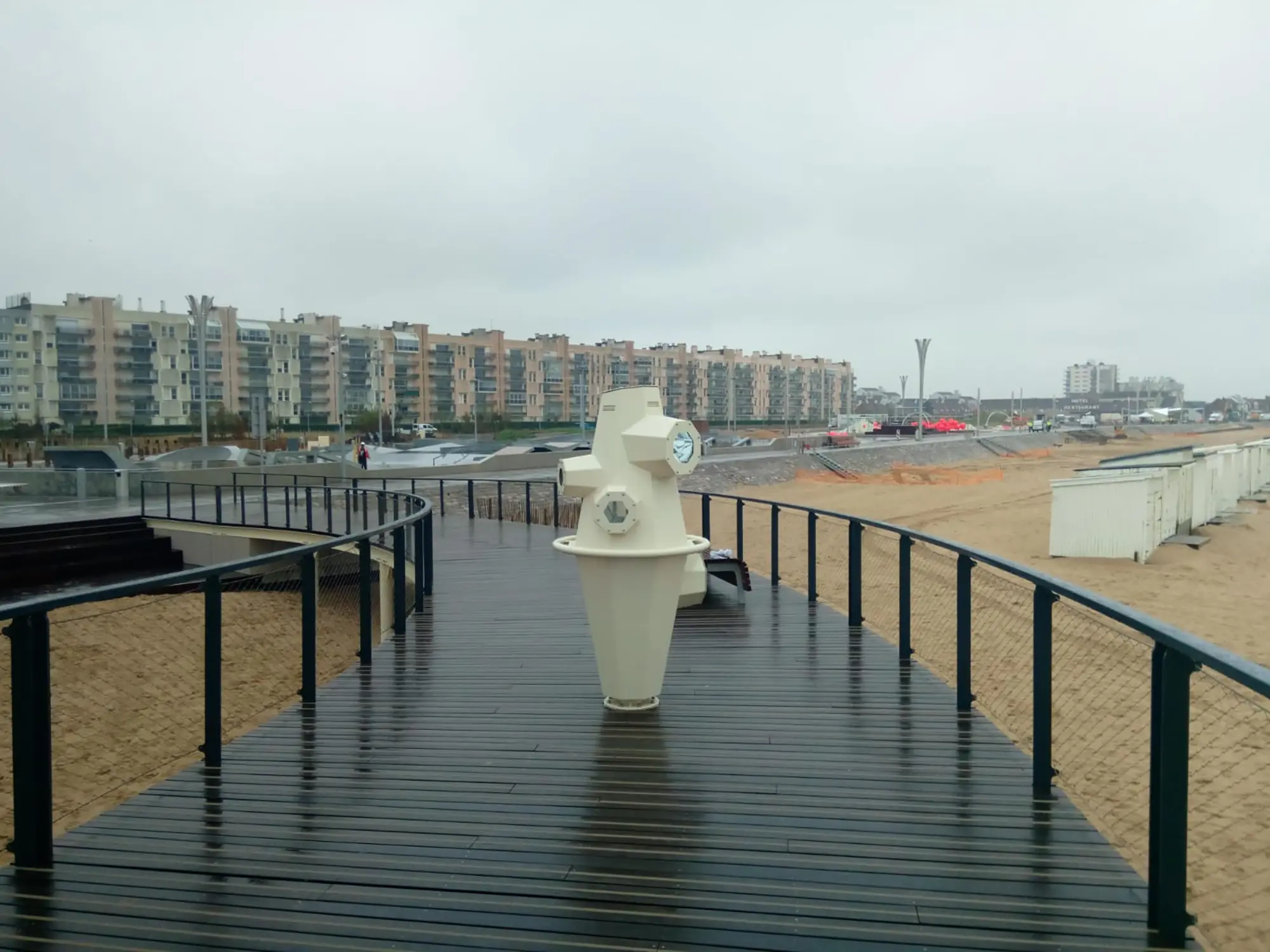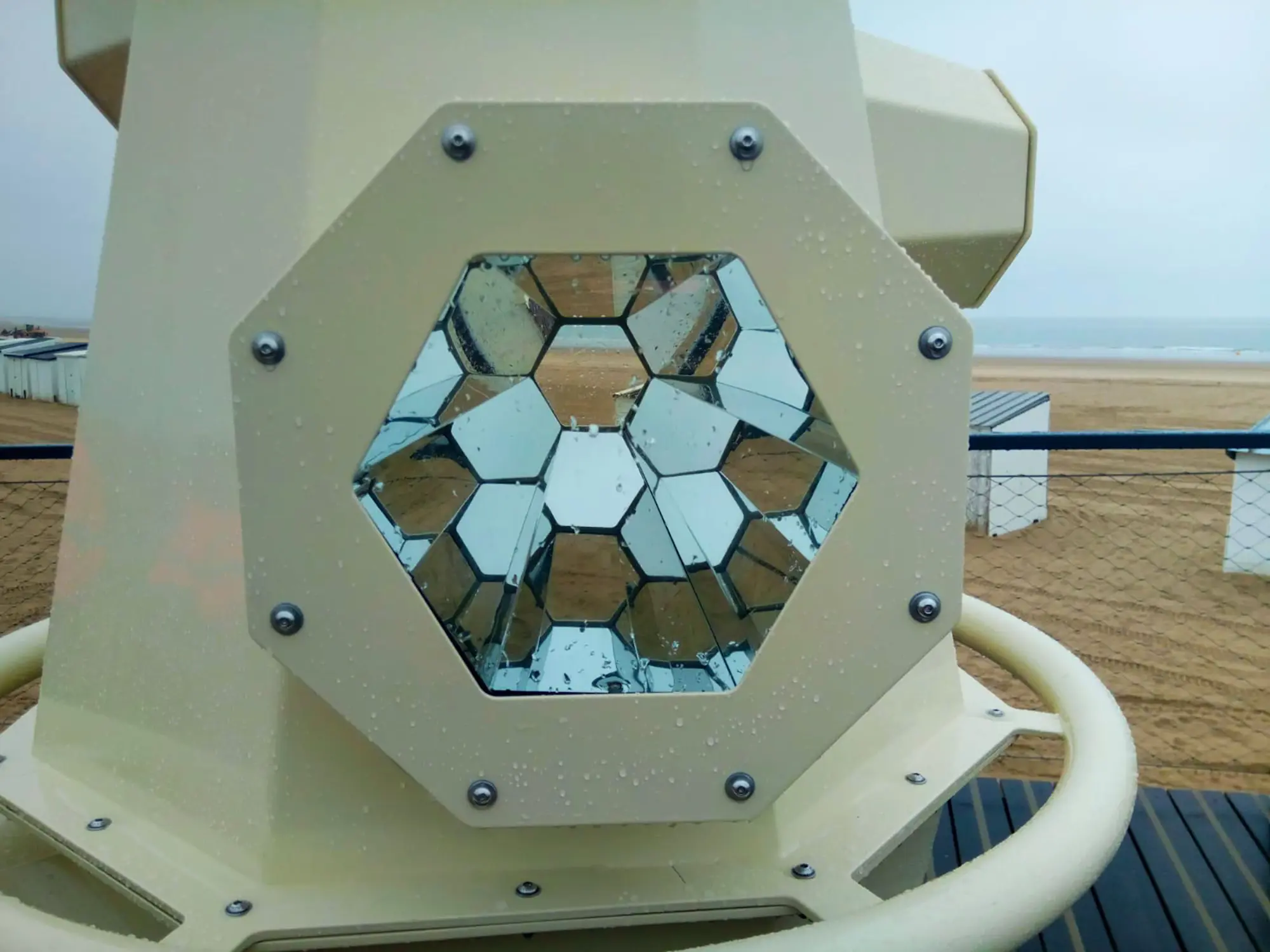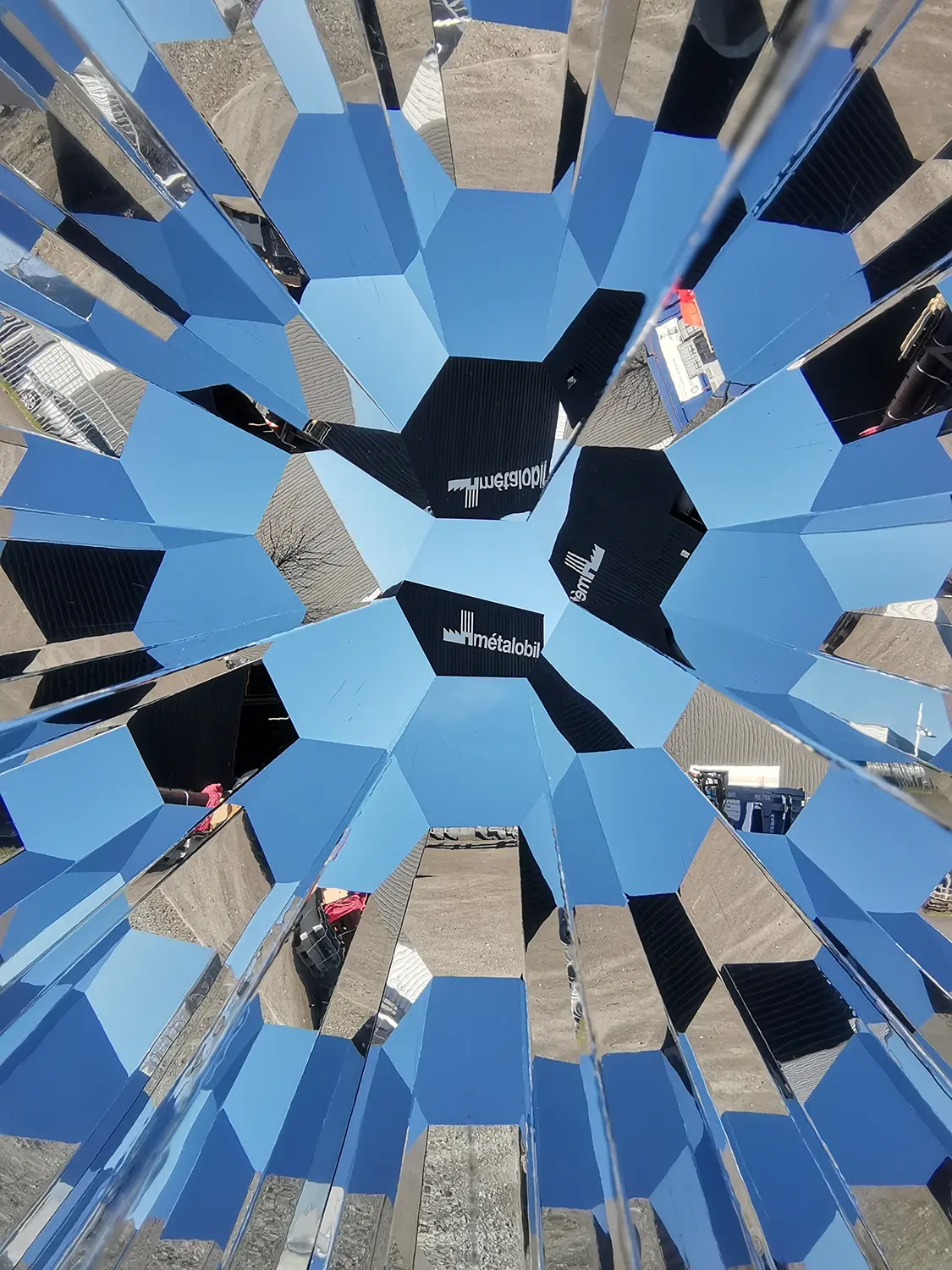 Ces configurations ont conduit au choix du Dibond® miroir pour les surfaces réfléchissantes. Les parties extérieures sont quant à elles réalisées en tôles d’inox thermolaquées, garantissant une résistance adaptée aux conditions exigeantes d’un environnement en front de mer.