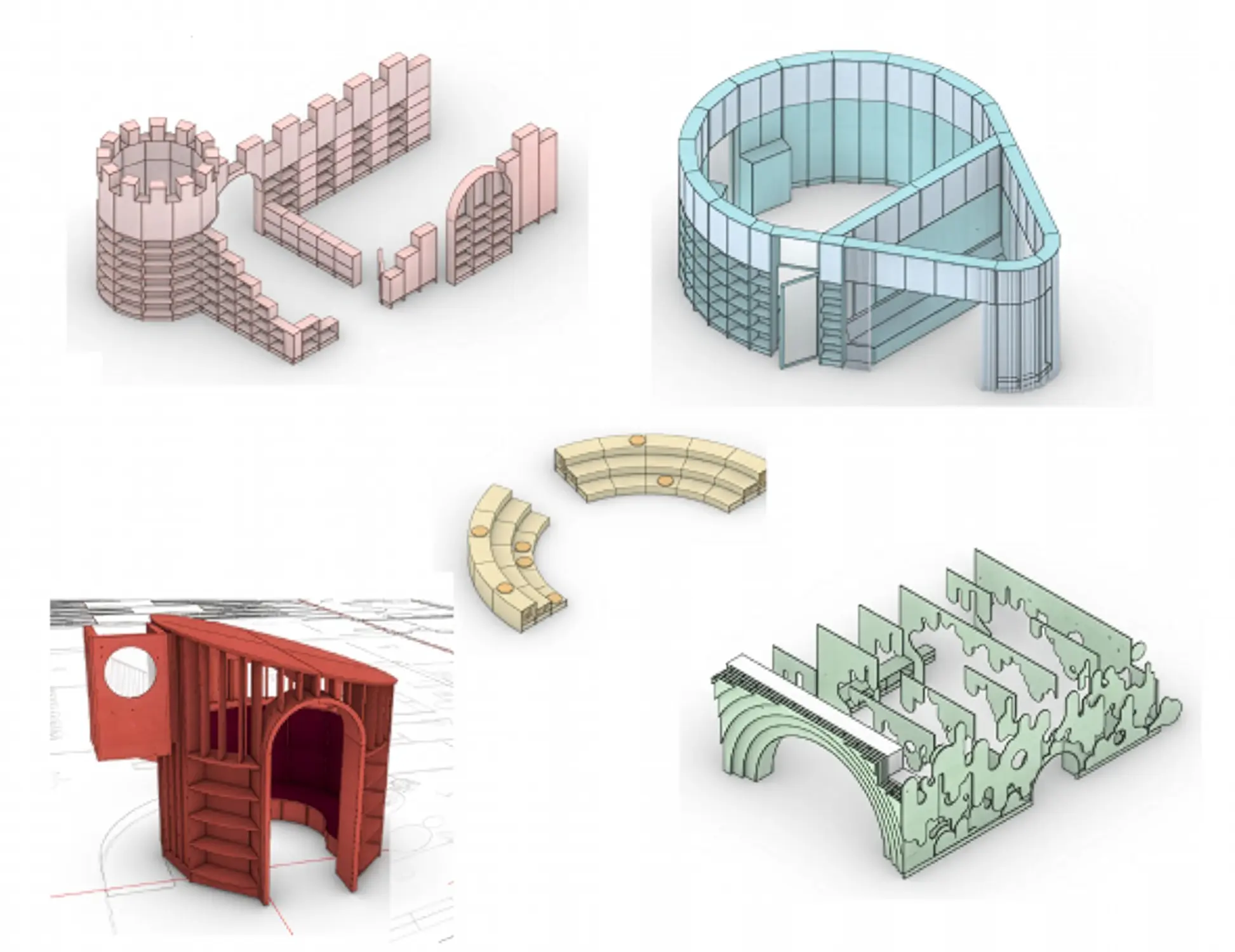 Des micro-architectures allégoriques issues de l’univers du conte : château, grotte, cabane.