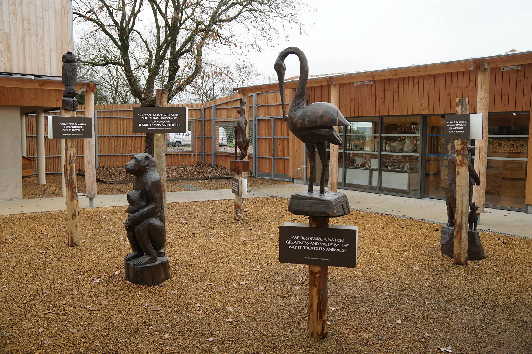 Les architectes TICA accompagnés des scénographes Barreau Charbonnet se chargent de l’agencement du refuge avec son extension et sa réhabilitation : entrée, hall d’accueil, boutique, parcours d’exposition, etc. Métalobil conçoit, fabrique et pose les mobiliers, la scénographie, les totems, etc.