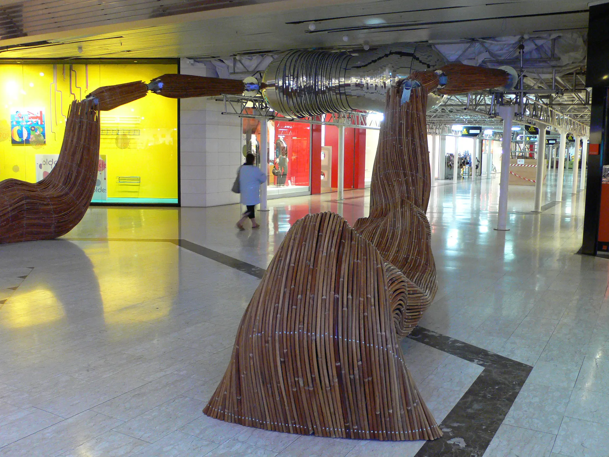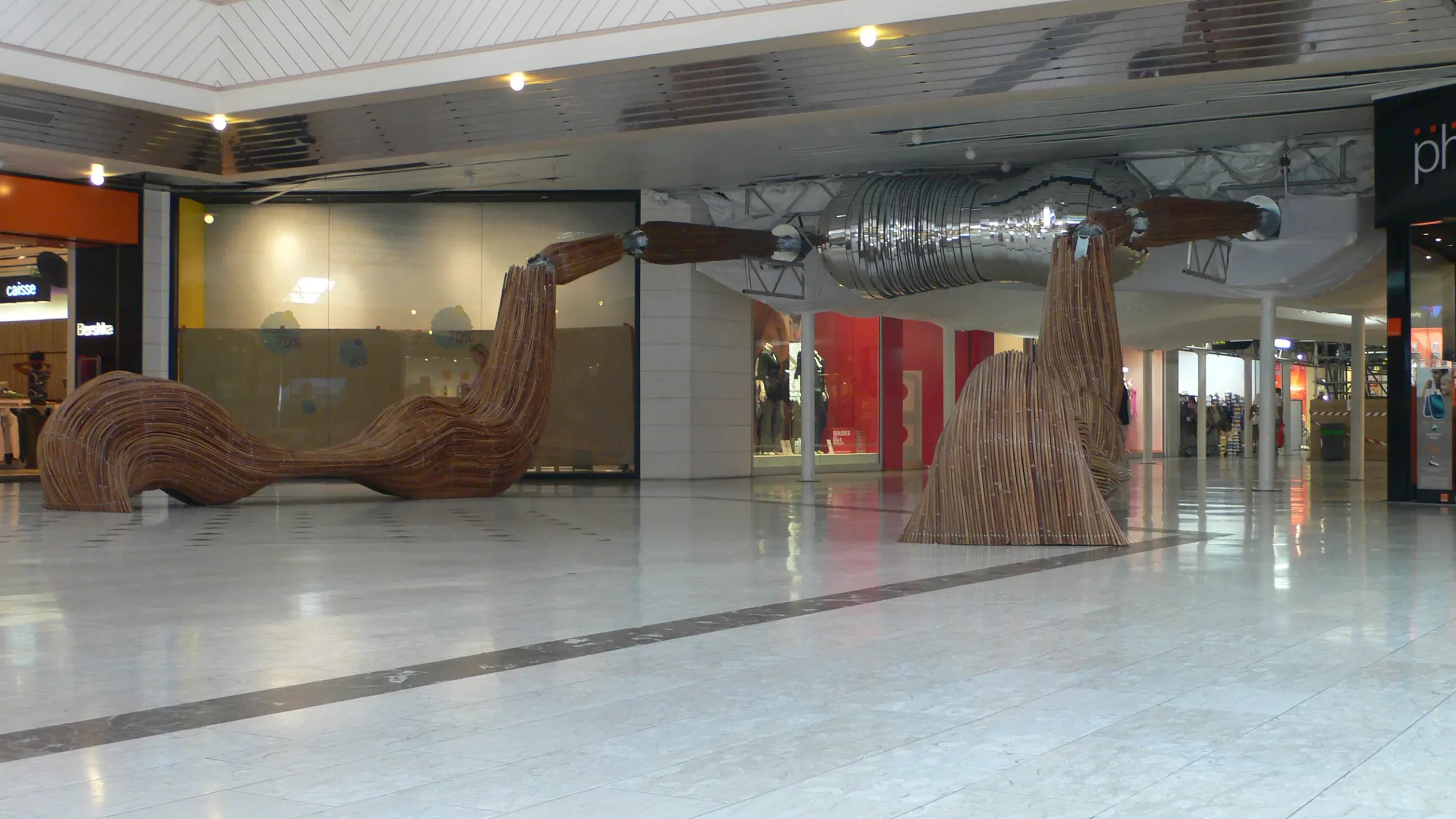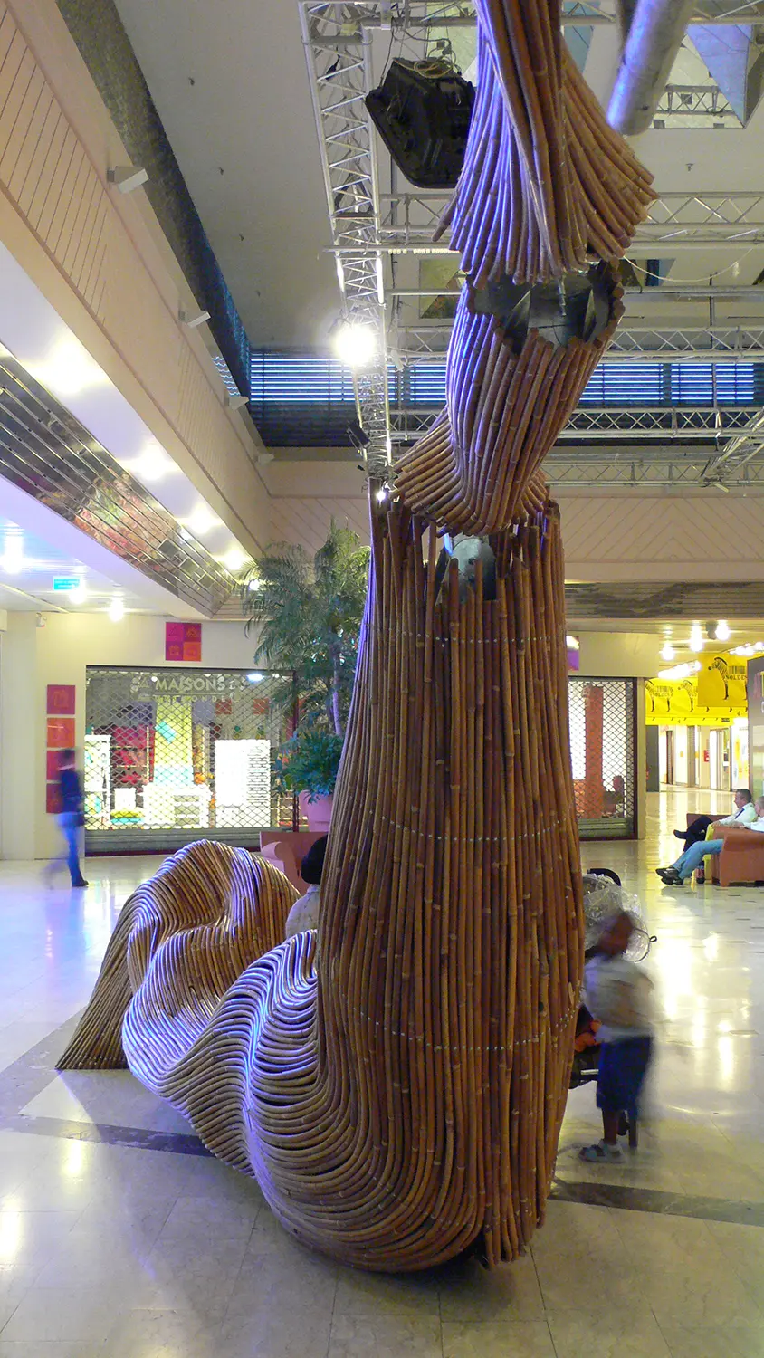 Transformer l’échafaudage nécessaire aux travaux de réhabilitation de la galerie marchande Beaulieu en une variété de scarabées de rotin géants et hospitaliers.