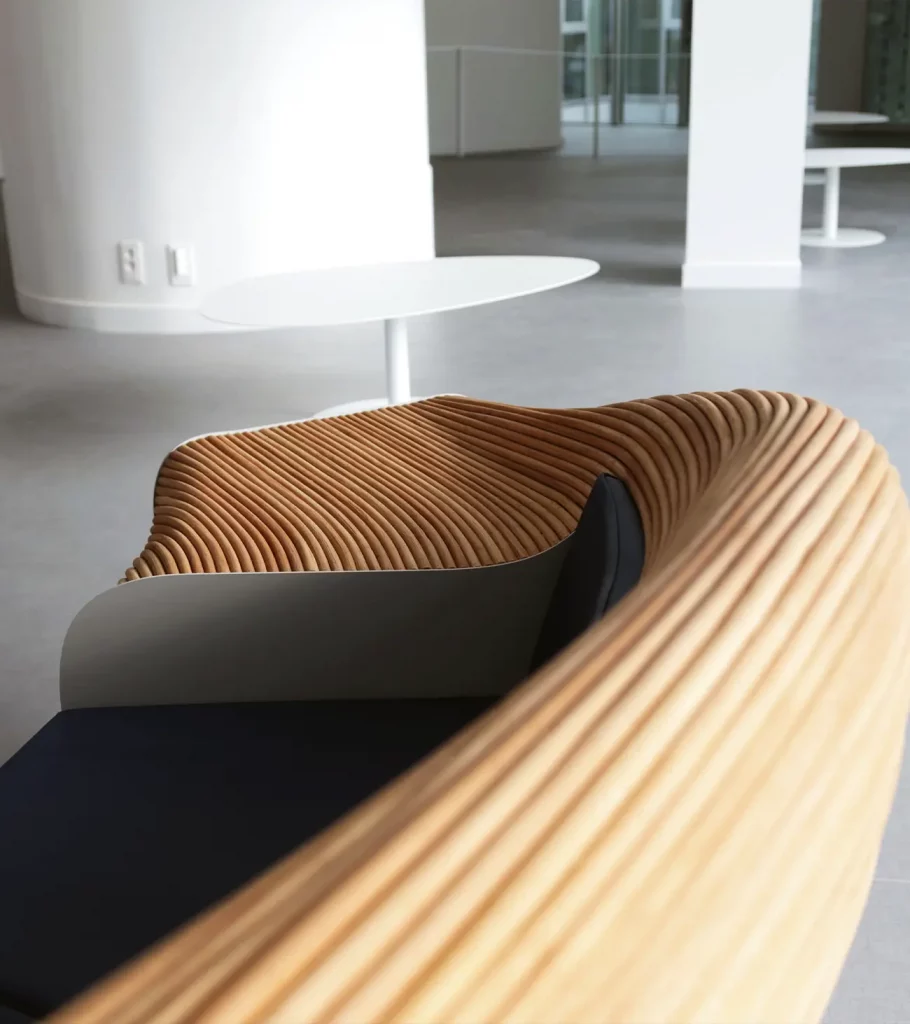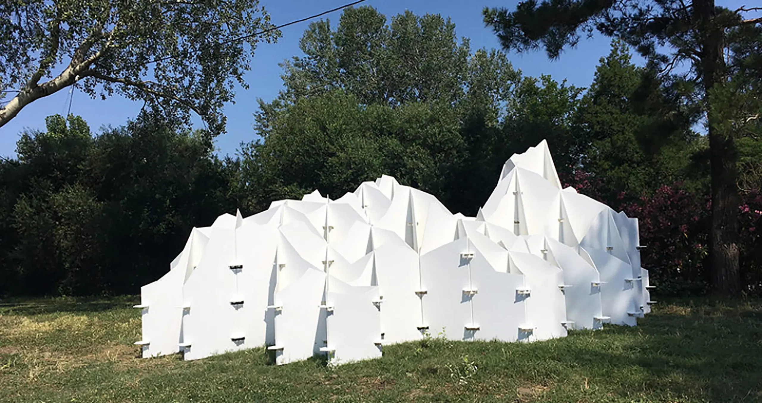 Vincent Mauger déploie une vague sculpturale inspirée des trames informatiques 3D et de la data visualisation. La texture de la houle nous projette dans un paysage mental où la puissance souveraine de l’eau, capable de submerger les territoires et les aménagements, aurait été figée. Ce scénario catastrophe mis en pause s’observe sans risque, il révèle ses reliefs sous différents points de vue.